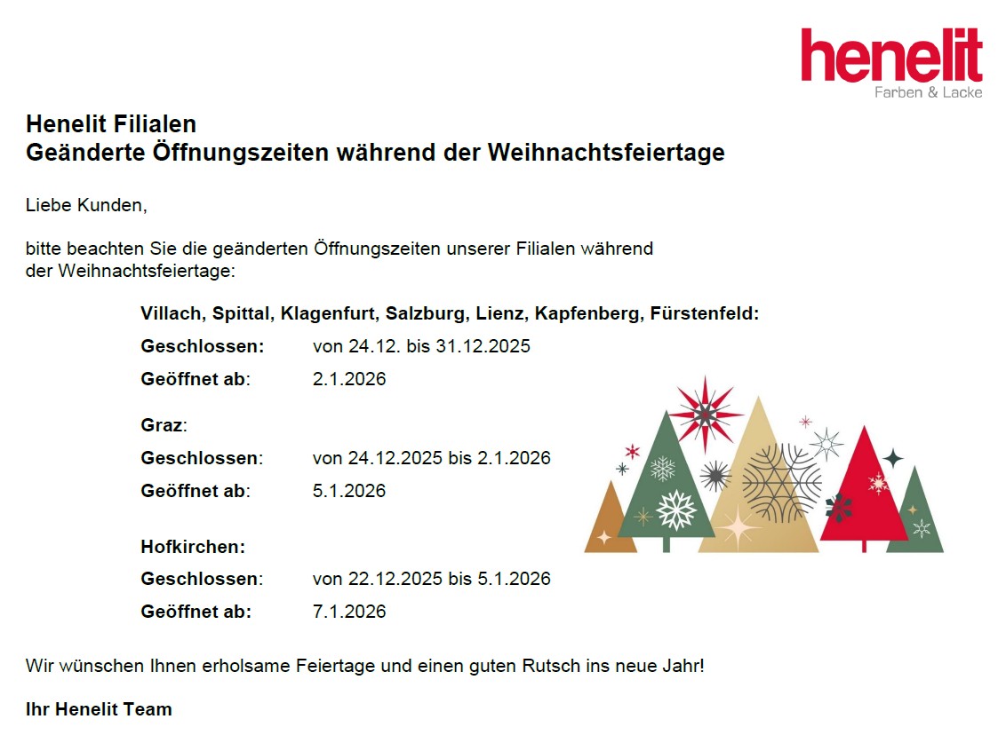 Geänderte Öffnungszeiten Filialen Weihnachten